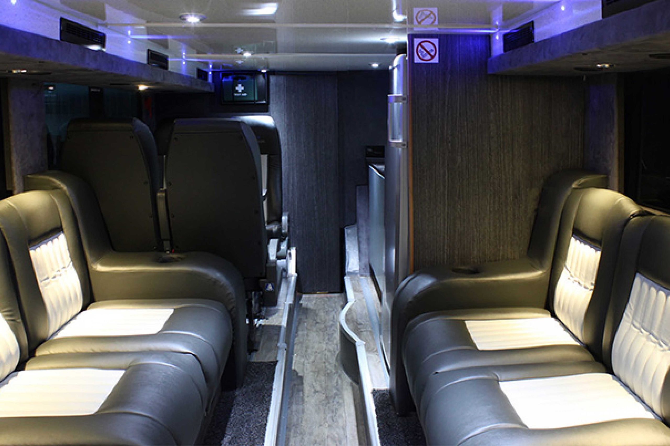 Luxury Coach hire for up to 24 people. These vehicles may come with tables, reclining seats and aircon as standard. Read More